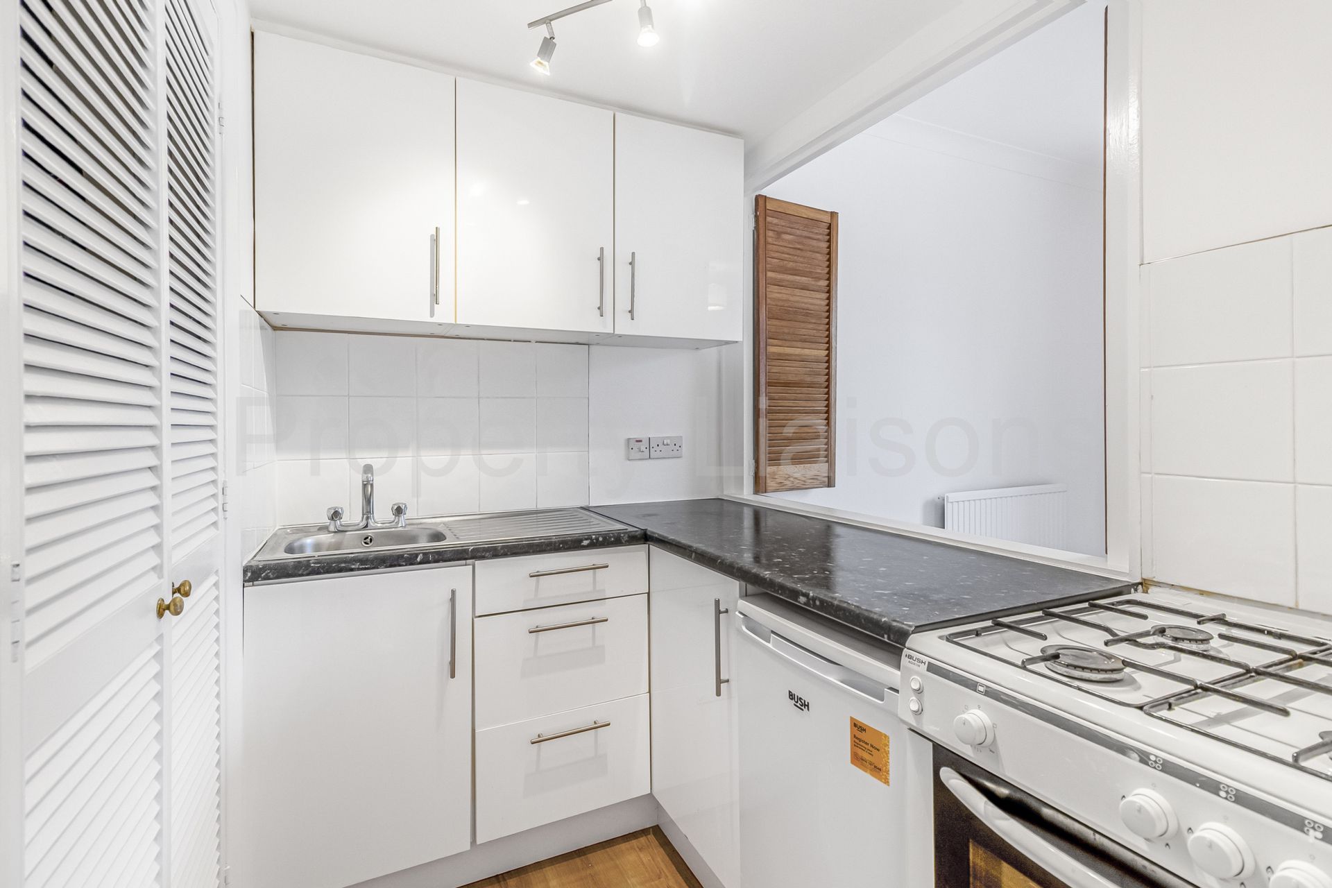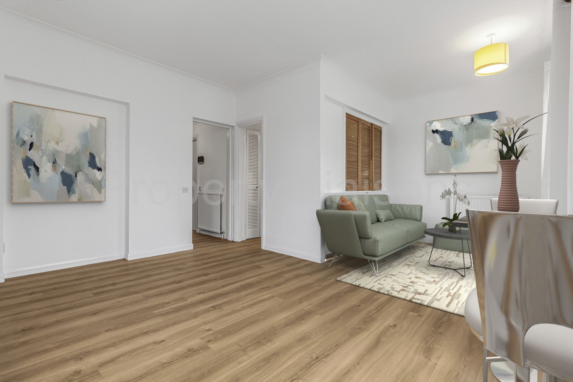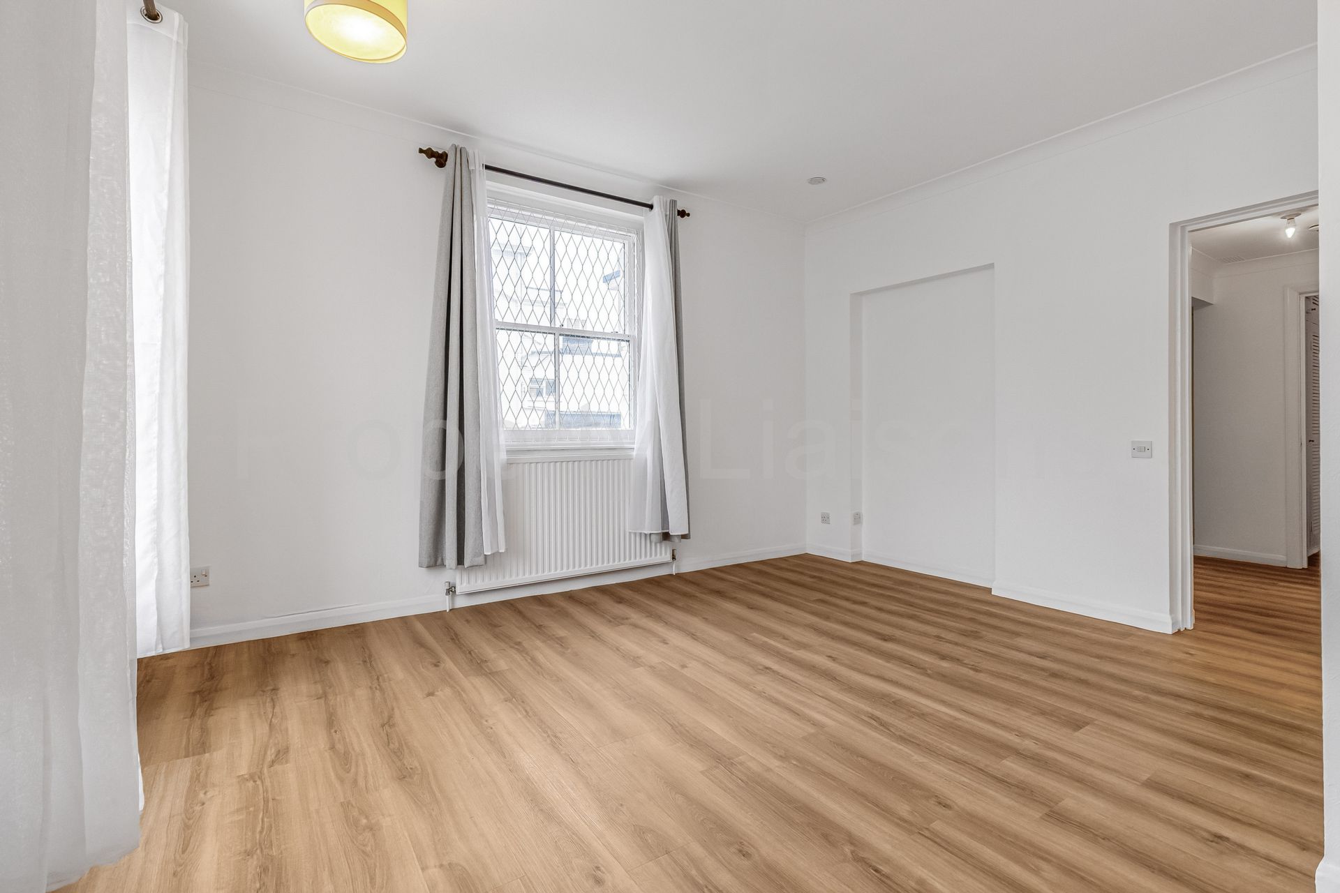 This apartment features new flooring throughout and high ceilings. There is a dual aspect reception with a separate kitchen. A bedroom that is positioned away from the road and has built in floor to ceiling wardrobes. There are also two useful storage cupboards.