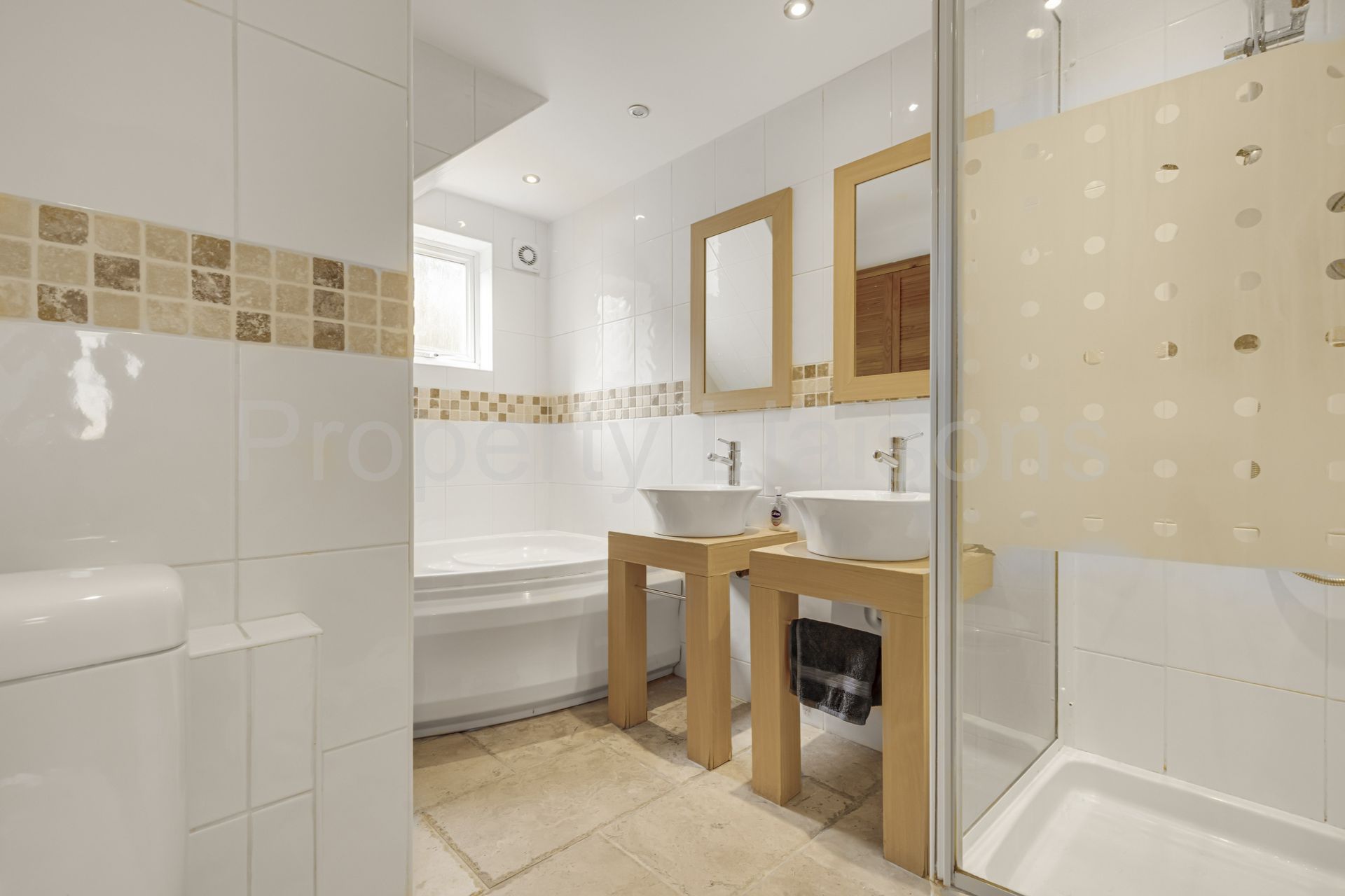 The bathroom does not shy away from offering a touch of luxury with a sleek corner bath, separate shower cubicle, and dual basins; ideal for couples. The bedrooms are sanctuaries of calm and order, providing ample space for personalisation and rest.