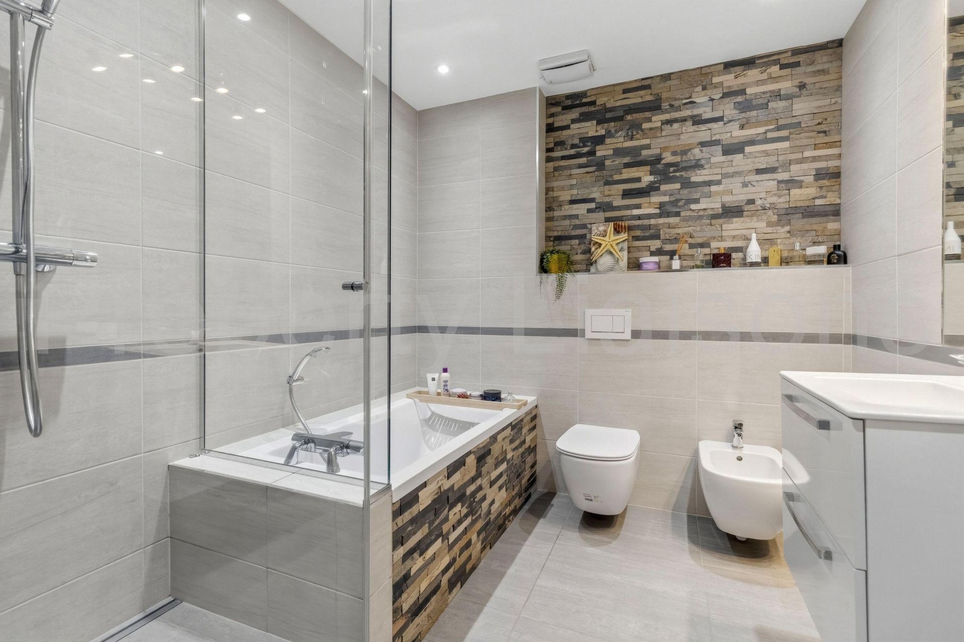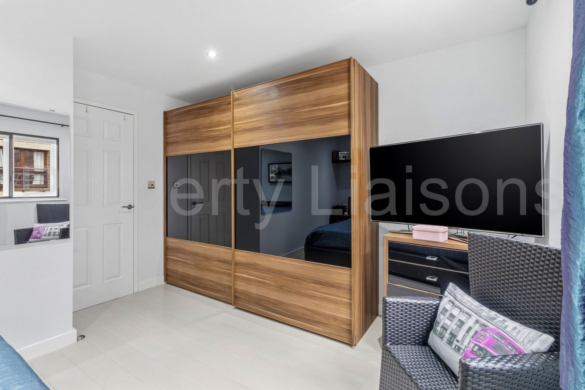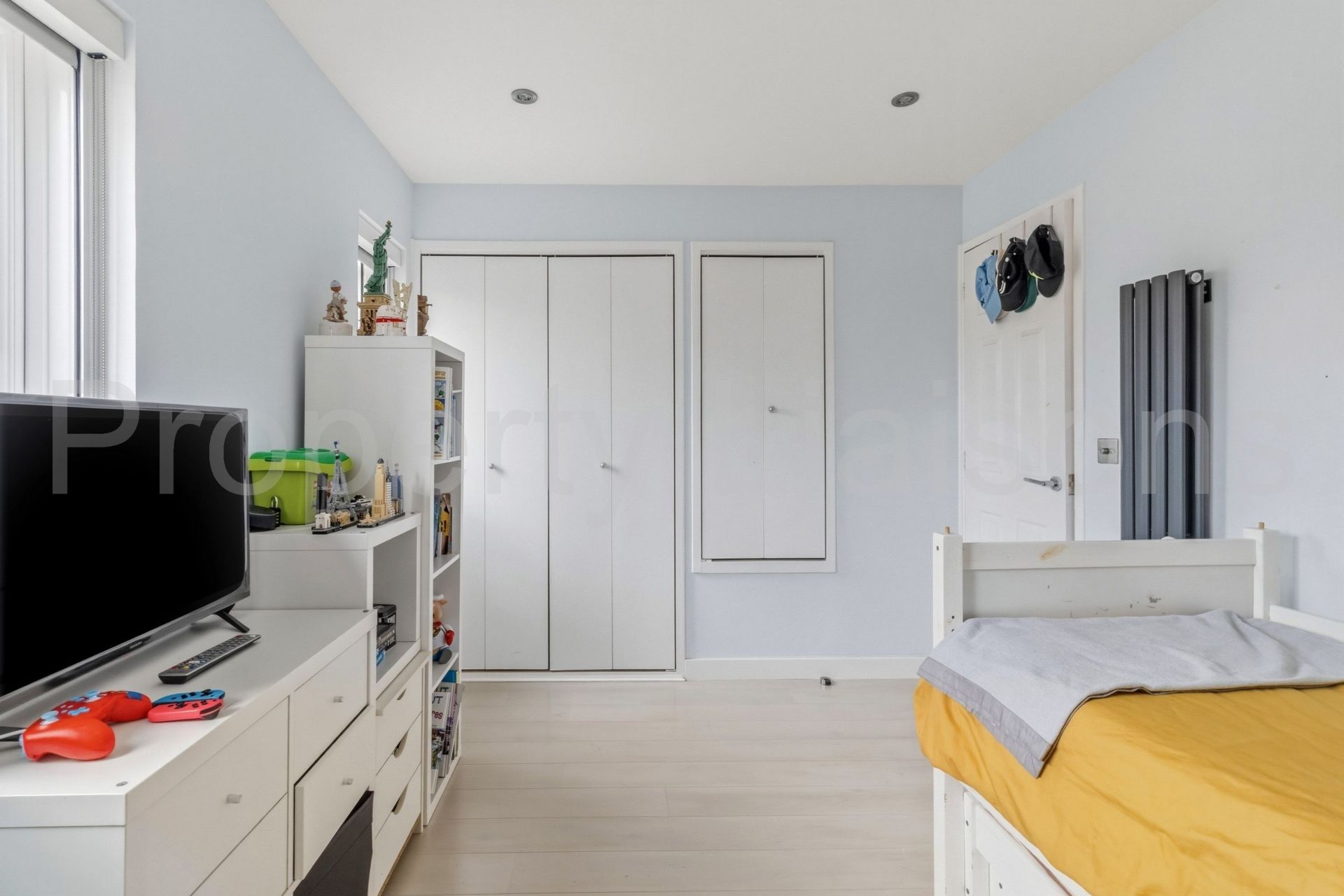 On the ground floor one will find a bedroom or office with good ceiling height and triple glazed windows. A shower room that's tiled in a two tone, contemporary style with glass shower screen, wash basin, a WC with concealed cistern, heated towel radiator and wall mounted mirror. There is a useful understairs utility cupboard with plumbing for a for a washing machine and bespoke storage drawers.
